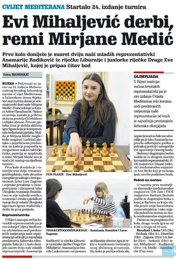 Započele borbe na 24. ženskom šahovskom turniru “Cvijet Mediterana”